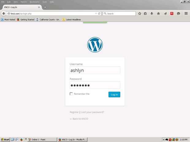 2. vaya a knco.com/wp-login.php para acceder a la parte posterior del sitio web de KNCO.