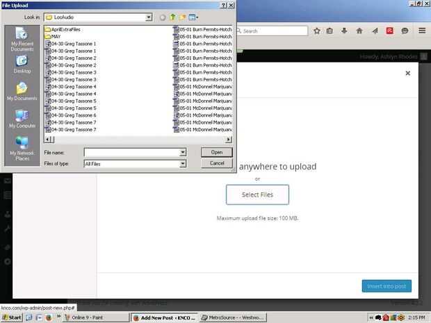 7. en la nueva ventana que aparece, seleccione la pestaña que dice subir archivos y, a continuación, haga clic en el botón de seleccionar archivos. Desplácese hasta la unidad W: > LocAudio y encontrar el audio de los clips lo quieren utilizar en esta historia. Mantenga pulsada la tecla Ctrl para seleccionar varios clips. Cuando se selecciona todos los clips de audio, haga clic en abrir, esperar a subir y cerrar de la ventana de añadir medios.