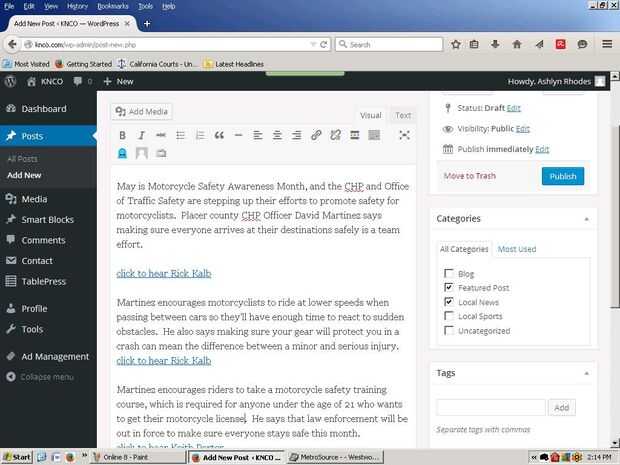 Nota: A veces al iniciar sesión, puede notar que la notificación de comentarios en la parte izquierda de la pantalla del tablero de instrumentos se enciende. Dave es quien aprueba responde a comentarios de KNCO todos puestos, incluso noticias. Si necesita más información para responder a una pregunta, él vendrá a preguntar. Simplemente lo ignoran y él a cuidarlo cuando tiene tiempo.
