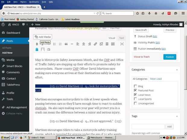 9. después de haber reemplazado todos los archivos de audio, a la derecha de la ventana, en la sección que dice categorías, revisar noticias locales y Post destacados.
