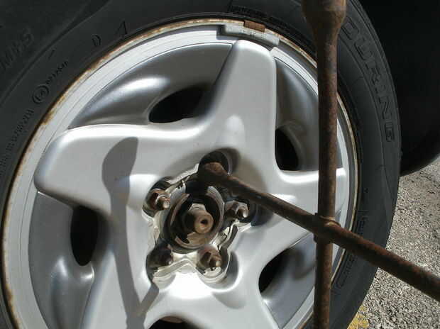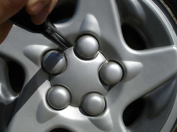 Si las tuercas son asimétricas, recuerde que la dirección que se enfrentan. Esto es importante. Las tuercas pueden o no pueden cubrirse con un tapón, que es generalmente forzado fuera de uso de la barra del interruptor (otra vez, consulte el manual del propietario para obtener información específica). La rueda puede utilizarse para almacenar temporalmente las tuercas. Puede que necesite usar la barra de interruptor automático para conseguir las tuercas iniciadas, debido a la probable presencia de