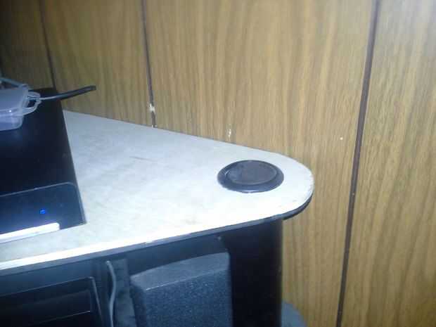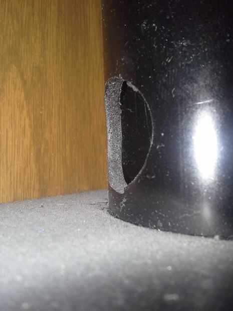 Las 1" agujeros perforados en las tuberías por lo que he podido conseguir los cables pulg. todo estaba listo para armar. Los agujeros eran apretados y así tomó algunos trabajos y un martillo de goma para poner en marcha. pero una vez estaba en poner algunos tornillos en desde el lado que sea contra la pared. En ese momento estaba todo listo para ser pintado. Quise manchar la madera en la parte superior e inferior y no han hecho todavía pero pinto el interior espacio negro porque quería que parte de ser difícil de ver, oscuro y escondido.