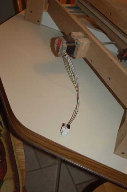 Para conectar el controlador a los steppers, he utilizado cables de conexión de Red CAT5e estándar. Perforó hacia abajo de los cables de los pasos en un conector RJ45 para aceptar cable del remiendo. Barato y efectivo. Mi amigo dudó la CAT5e, pero estaba empujando a tan baja potencia, no importa.
