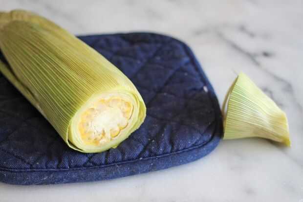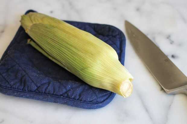 Quite el maíz del microondas utilizando guantes y corte aproximadamente 1 pulgada de la parte inferior.