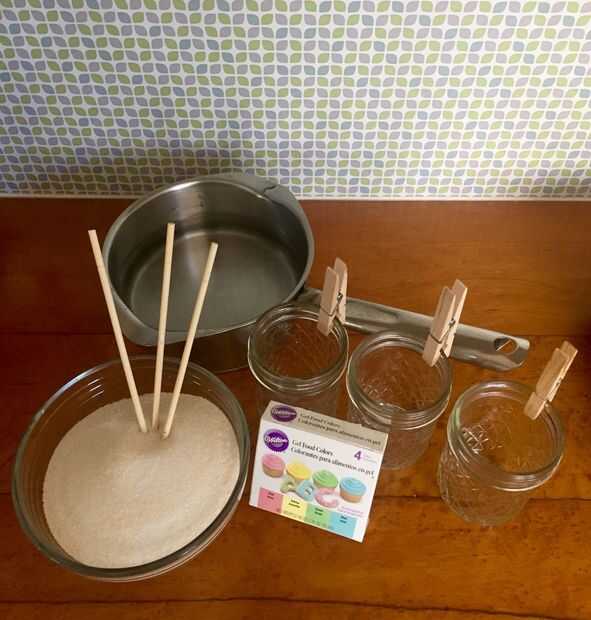 Permite hacer caramelo!!!!!!Paso 1: materialesPrimero necesitas una taza de vidrio, 3 tazas de azúcar, olla con agua hirviendo, cuerdas o un palillo, pin de ropa o lápiz, colorante de alimentoPaso 2: Agua y azúcar Llena tu olla con agua y hervir en t