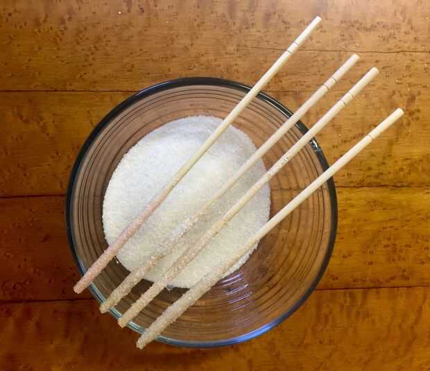 Una vez que jarabe, sus pinchos de la inmersión en la solución y luego cubrirlos en gránulos de azúcar, que permitirán que el caramelo de la roca crecer.