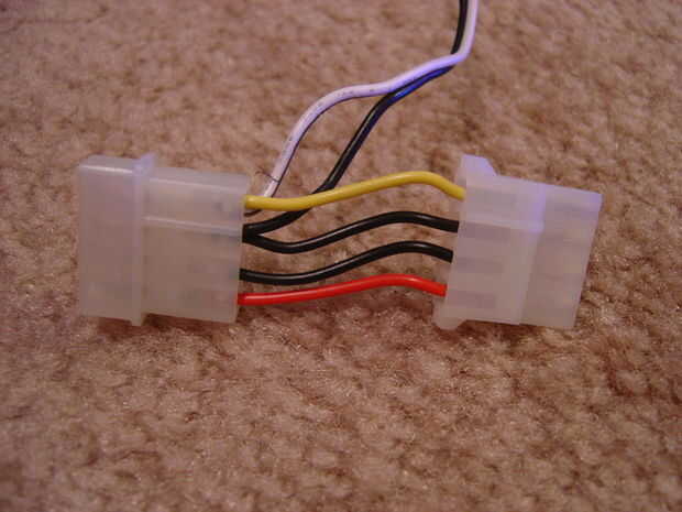Echa un vistazo a cómo nuestro kit de cátodo se supone que conecte a la computadora. Es un estándar 4-pin conector de periférico pero solo tiene dos cables. ¿Es lo + 12 o + 5v? Ver donde los dos cables línea hasta cuando se conectan a un circuito abierto y correr, equipo. A continuación, medir con un multímetro. O simplemente ver el código de colores en internet. De + 12v.