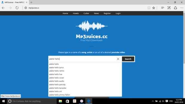 En el sitio web solo escribe en la canción que desea (en mi caso es Hola Adele)