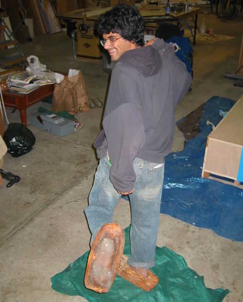Victor Brar se muestra cómo utilizar barras de pan que los zapatos.Buen pan caliente con una corteza masticable es bien apreciado por la calidad del zapato de pan.