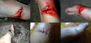 Aquí es pie de Saúl después de que él caminó en la aleta de la Junta de windsurf que intentaba con la cometa.