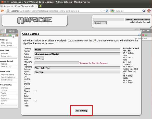 16. poner controles en las cajas si quieres Ampache para obtener carátulas de internet o importar tus listas de reproducción. Yo no he hecho uno, pero estás más que Bienvenido experimentar.