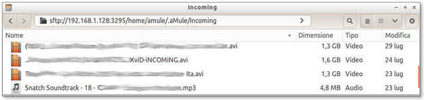 Luego login con el usuario de amule credencial (ver sección 4.2) y explorar hasta llegar a la carpeta que contiene los archivos descargados: