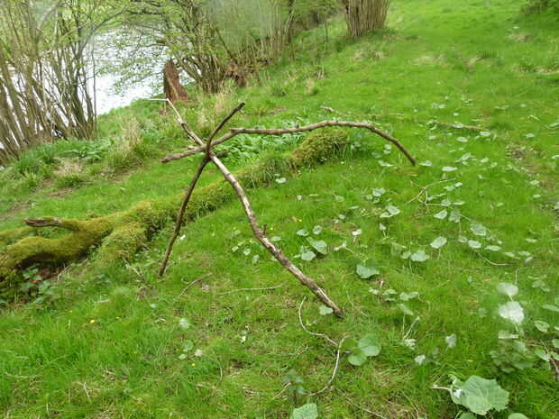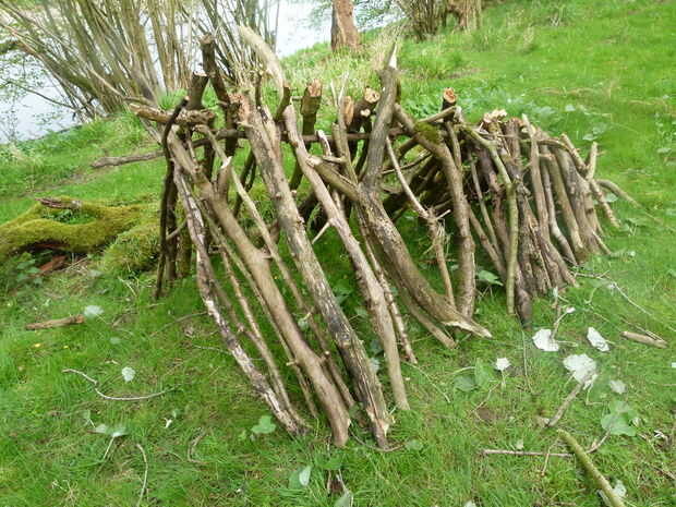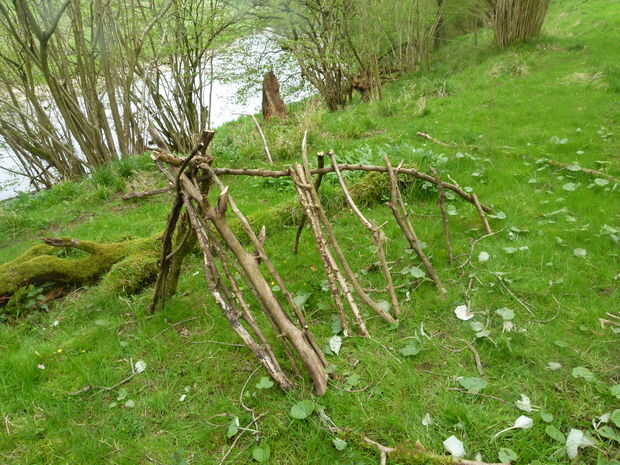 A continuación coloque ramas diagonalmente hacia el poste más largo en ambos lados (ver fotos)