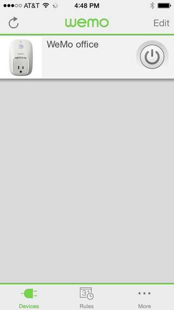 La WeMo se conectará a la red. A continuación se mostrará en la lista de dispositivos.