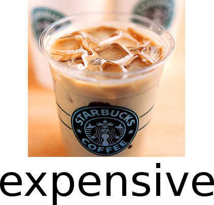 Imaginemos que desea que un Venti y grandes. El costo es de $3,85 IIRC y un latte Venti helado tiene 3 tiros de espresso. Ahora Supongamos que desea un extra shot, para compensar el hecho de que la máquina pulsador de Starbucks es servir shots de espresso débil. El costo sube por unos $0,50, para un total de más de $4.