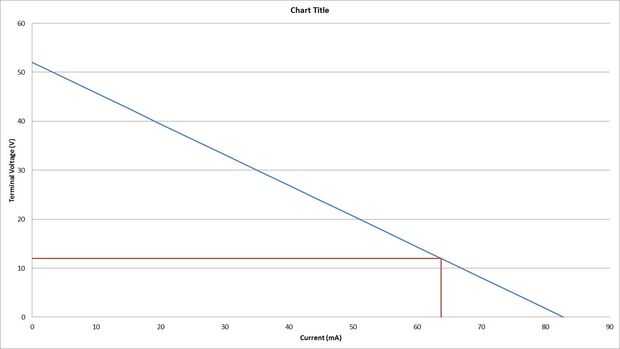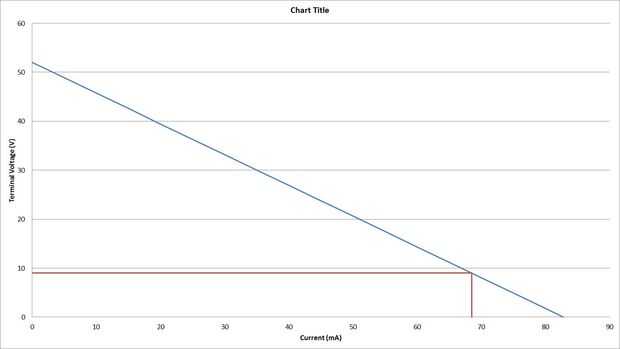 Básicamente esto significa que puedo realizar un circuito de 12V a 64mA, un circuito de 9V a 68mA o un circuito de 5V en 75mA. Esto no es mucho. Pero es suficiente para cargar un teléfono celular.