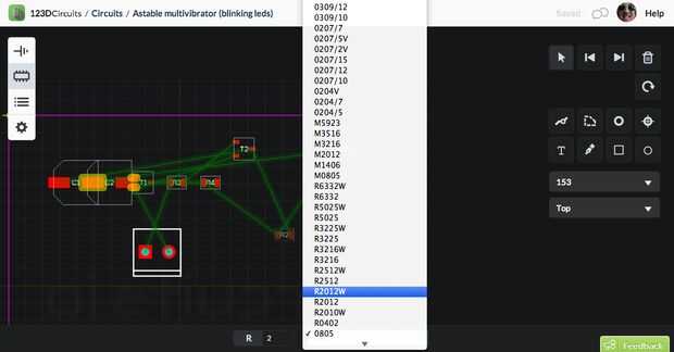 Por defecto todas las huellas son componentes pequeños de montaje superficial (SMD). Si desea cambiar la huella que a través de agujero o cualquier otro paquete, seleccione el componente y seleccione el un espacio diferente en el menú emergente.