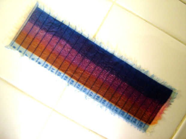 En un día soleado típico con sin nubes en el cielo, usted realmente no necesita desarrollar su pieza durante más de cinco minutos en el sol. Es 2 PM y F 80 cuando mi prueba de exposición. Mi tinta comenzó a desarrollar notablemente dentro de un minuto en el sol. En un día nublado o frío, su kilometraje puede variar. Como se puede ver en esta imagen, hay alguna diferencia entre las exposiciones de 5 minutos y 25 minutos pero no mucho. Lumi sugiere un tiempo de exposición de 10-20 minutos. Esto puede ser la mejor gama para la mayoría de los usuarios pero en un día soleado, en la luz solar directa, es realmente innecesario y podría causar sobreexposición si su negativa no es perfectamente plana contra la pieza y tiene muy buena luz-bloqueo en las áreas oscuras.