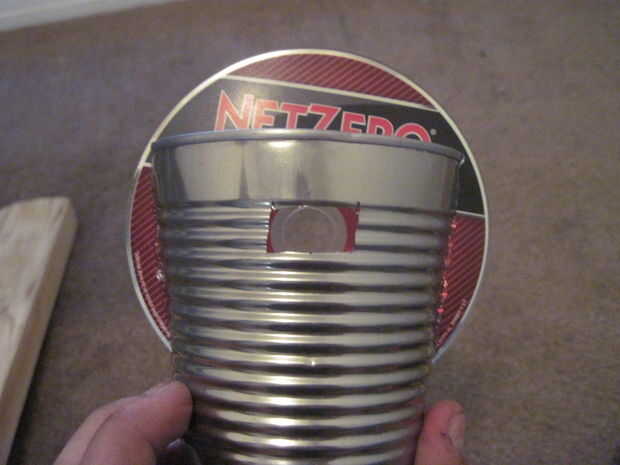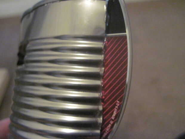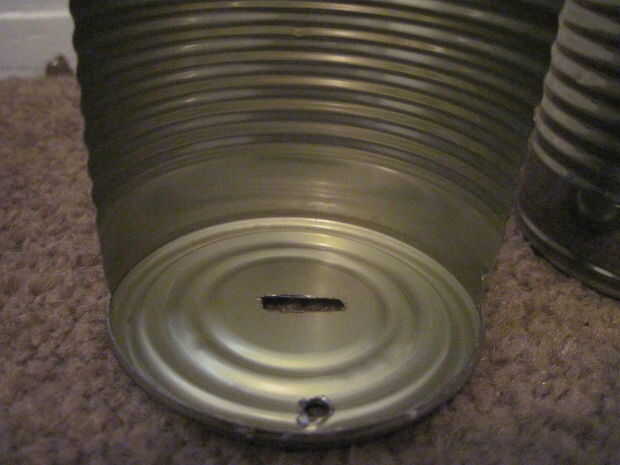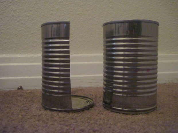 Corte la lata por la mitad dejando intacta la parte inferior entera, necesita de esa manera.