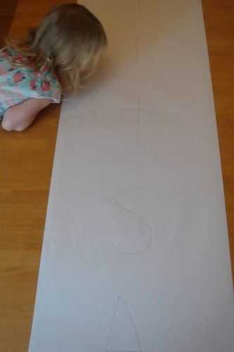 Ahora, no cometer el mismo error de nudillo-cabeza hice la primera vez armó el banner y escribir las letras del nombre de su hijo el longitud ' ' del papel.