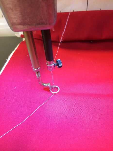 Retire la barra del vientre y levante a su tela. (Asegúrese de que la máquina no está activa y ha cortado sus hilos!)