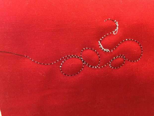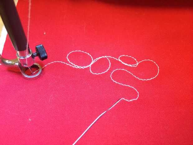 El vientre hasta la barra, traer la máquina a su sándwich de edredón y ejecutar algunos puntos de prueba. Asegúrese de que hacer un montón de patrones circulares que muestran problemas con la tensión al máximo.
