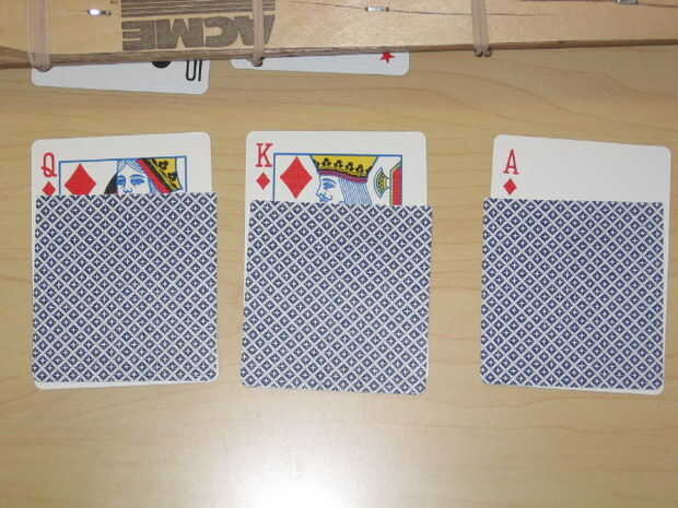 Ahora uso mi otra plataforma para cortar tarjetas de tres por alrededor de una pulgada. Usar una navaja, ahora pero en las tijeras de principio funcionada bien (hoja de afeitar es apenas más rápida, sólo de la diferencia). Usar las tarjetas que usted no se preocupa por que no ser visto.