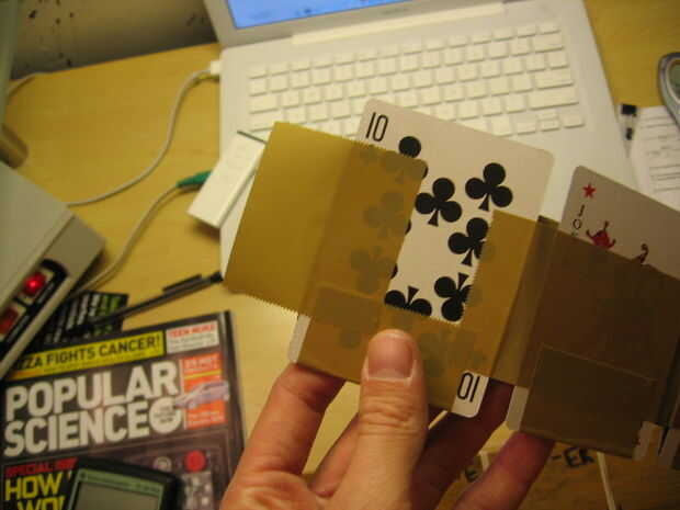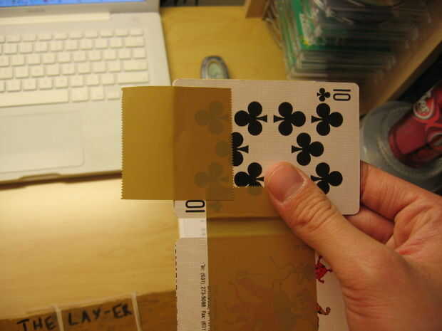 Una vez que las capas se alinean, cuidadosamente recoger y otra tira de 2-3 pulgadas de cinta adhesiva para fijarlos juntos. Hacer esto para todos los bordes de la parte inferior tres.