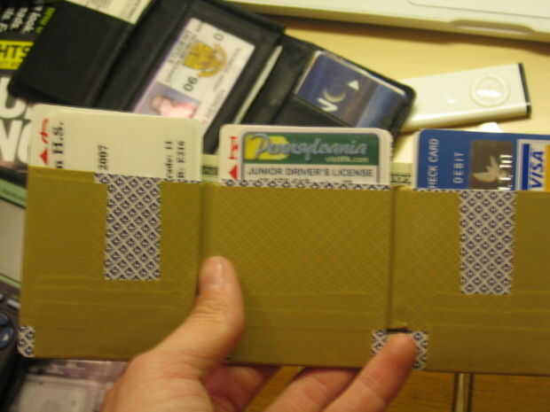 También he publicado fotos de la primera cartera que hice. Como mencioné en la introducción, sólo estaba usando cinta adhesiva marrón de visibilidad, así que por favor no utilice cinta adhesiva marrón pero algo claro cinta. También no sugeriría utilizar el as de espadas para el exterior, sí, todo el mundo quiere, pero personalmente creo que la escritura sea llamativo y no es necesario. Creo que al azar tarjetas funcionan mejor para que la cartera se sienta auténtico y original. Gracias todos por seguir mi primer instructable.