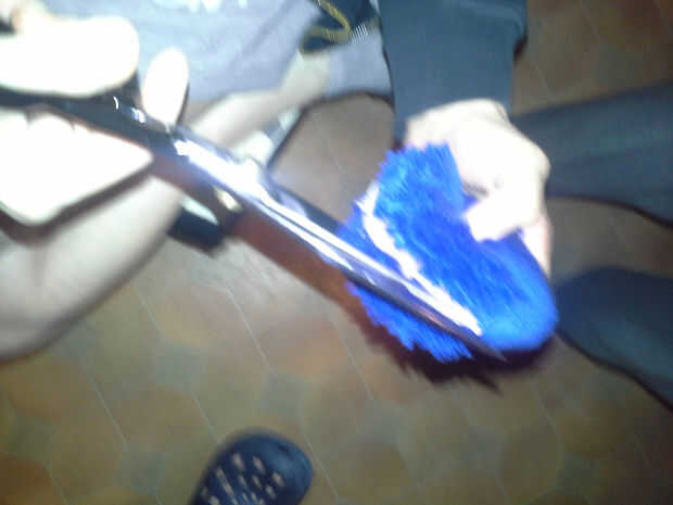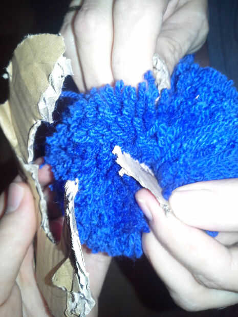Tener un fuerte par de tijeras y corte cuidadosamente entre los dos anillos de cartón. Esto puede tardar un poco, pero si la haces con paciencia y poco a poco, el resultado será mucho mejor. Tan pronto como se corte el furball, tomar un trozo de cuerda y fije la bola de la piel con nudos - exactamente entre los dos anillos de cartón. Asegúrese de que está realmente apretado. Entonces cortar los anillos, darle un pequeño corte de pelo y tienes el cuerpo de su protopet!
