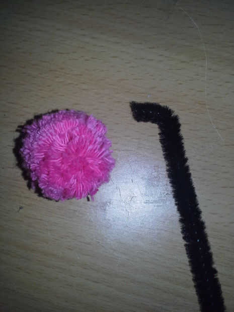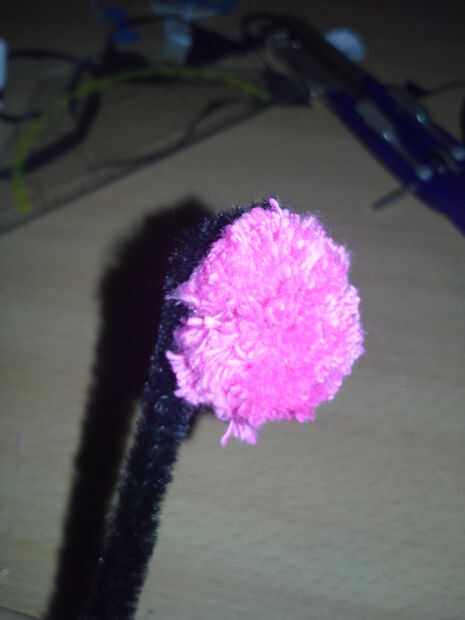 Para la antena, hacer otra bola de la piel al igual que el primero, pero mucho más pequeño y de color rosa. Hice unos 1,5 cm (0,6 pulgadas) grande. Tomar el alambre o el limpiapipas y pegamento caliente a la bola de la piel rosa.