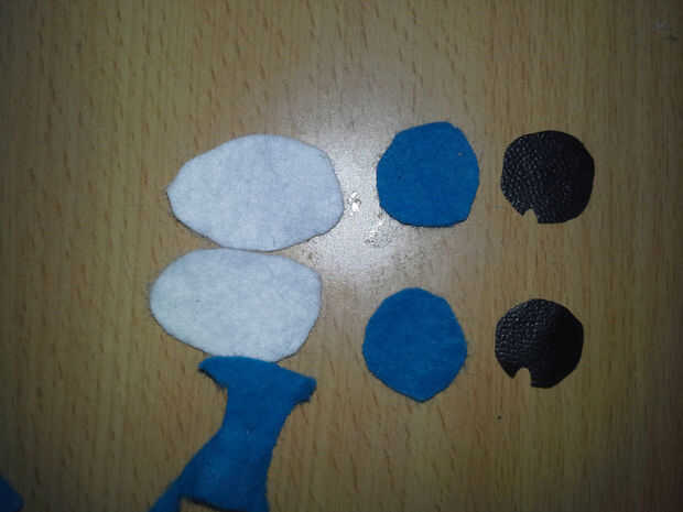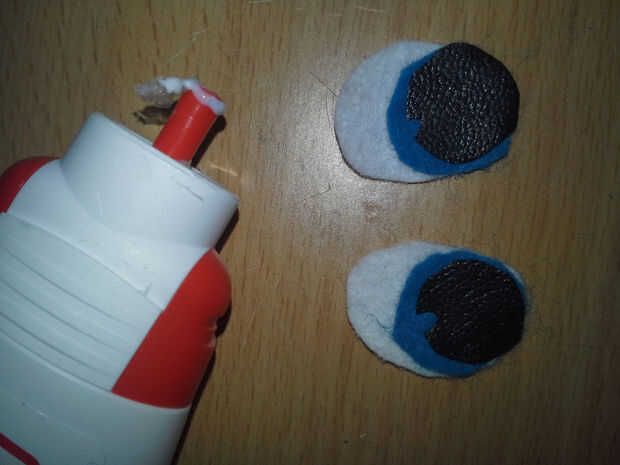 Los ojos están hechos de tres partes, el fondo blanco, el azul iris y las pupilas negras. Hacer plantillas para cada uno para asegurarse de que tengan el tamaño correctamente, luego las recorte y pegar juntos. Comparar siempre el cuerpo - proporciones normales lo son todo!
