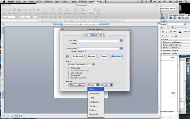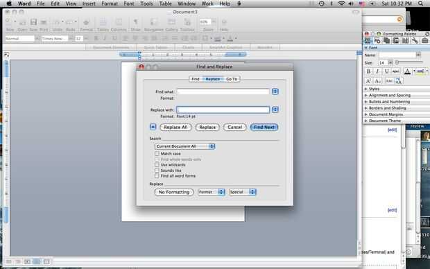 7) haga clic en aceptar en el menú fuente y haga clic en reemplazar todos