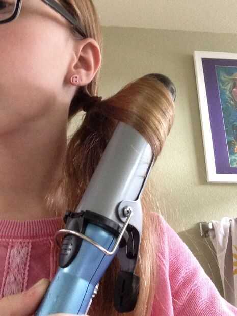a continuación, después de que la plancha se calienta, tome un mechón de su cabello y bajar la parte inferior de tu cabello y rizo en.