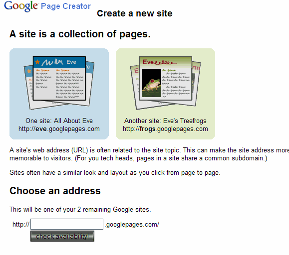 Después de seguir las instrucciones anteriores, usted encontrará una página con "crear un nuevo sitio ' en la esquina superior derecha. Haga clic en él. Nombre de tu sitio y presiona 'comprobar disponibilidad' (quizás tenga que repetir hasta que encuentre un nombre que no se toma.) Desplácese hacia abajo y elegir un diseño de partida, entonces baje más y elige un look partido. (usted puede cambiar estos más adelante) ahora todo lo que tienes que hacer es hacer clic en las partes de la página que decir cosas como 'haga clic aquí para entrar en título de la página' y escriba los nombres en Inglés, no HTML. Hay fotos para ayudarte.