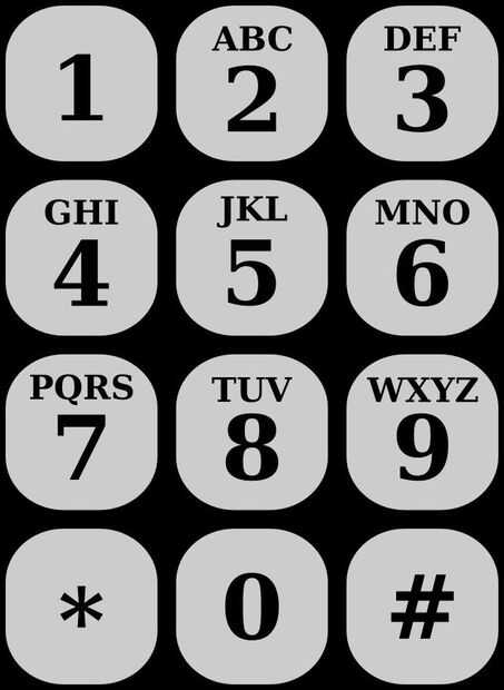 Una imagen del teclado del teléfono con letras y números de referencia (que podría también sacar su teléfono)