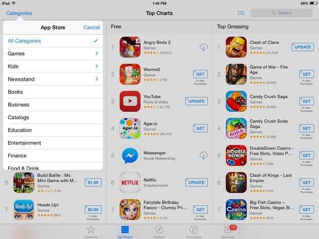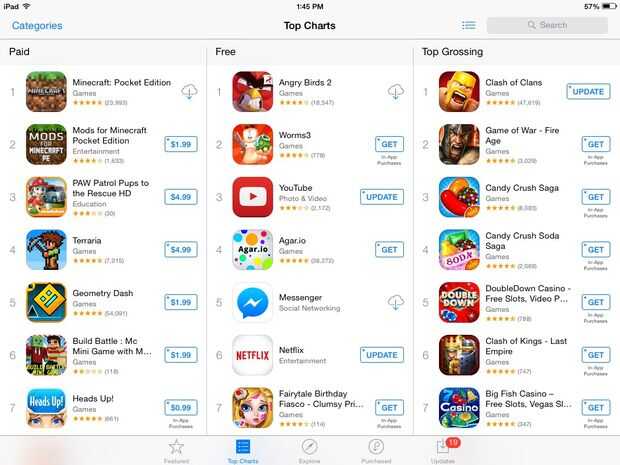 Open the App Store. Es la azul con la mesa de picnic blanco. Hay tanto formas diferentes de obtener o comprar una aplicación. Hay, de búsqueda, mejores gráficos y explorar. Es el lugar en donde todas las mejores aplicaciones es muy útil para encontrar aplicaciones para usted. Si usted sabe qué aplicación quieres buscar es el lugar para usted. La búsqueda es parte de destacados. La búsqueda se encuentra en la esquina superior derecha de destacados. Simplemente tóquelo y escribir la aplicación que desea obtener. Top charts es el lugar todos los apps son. Y puede presionar el botón de la categoría para las diferentes categorías. Explorar es fueron usted explorar todas las aplicaciones diferentes.