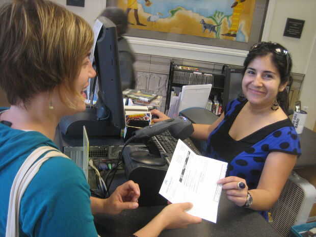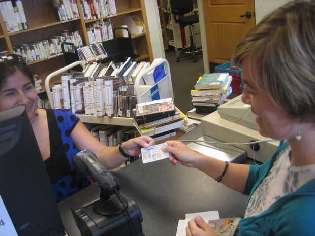 Una vez que termines llenar la aplicación, cierre la ventana y sube a los bibliotecarios amable en la recepción y les digo como obtener una tarjeta de biblioteca. Se tire hacia arriba de la aplicación en su ordenador, pida ver su identificación y prueba de dirección, pedirle que haga un número de pin de cuatro dígitos que utilizará para acceder a su cuenta en línea y luego... MANO SU PROPIO CARNÉ. Se obtendrá el tamaño de tarjeta de visita y otro más pequeño que cabe en tu llavero.