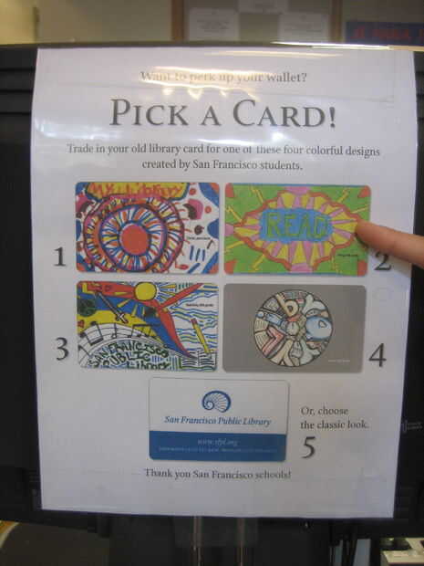 Si tienes suerte, podrían ser capaces de elegir entre una variedad de diseños. Como de ahora (primavera/verano 2008) usted puede elegir entre cuatro diferentes dibujos realizados por los alumnos de San Francisco. ¿Lo que dice 'vamos a la biblioteca'? ¿Una negrita demanda hecha por un alumno de 4 º a leer? ¿Círculos concéntricos de colores creados por un niño en edad preescolar?
