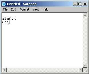 Esto simplemente abre explorer.exe y lo obliga a ir al directorio C:\.