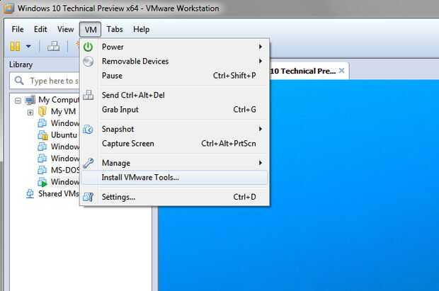 4. el último paso es instalar las herramientas de VMware, por lo que puede hacer cambiar el tamaño de pantalla dinámica, modo de la unidad y la impresión. Menú VM, seleccione instalar VMware Tools y siga los pasos para finalizar la instalación.