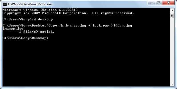 Copiar images.jpg /b + lock.rar hidden.jpg