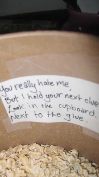 Mantener sus pistas, para que lo sepas son escritura, y sugiero escribir en un pedazo de papel donde se esconden, en caso de que olvide o la pista no puede encontrar o mantener su propia copia de las pistas.