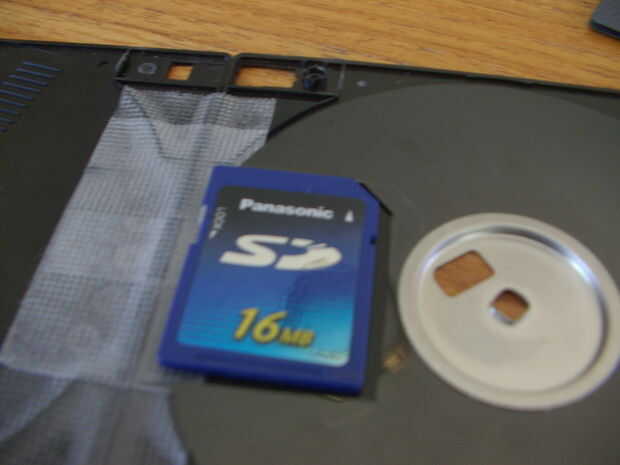 Ahora usted necesita volver a poner la cosa juntos. Usted no necesita las cosas suaves pero necesita el disco. Simplemente graba la parte inferior y usa el clip para sostener juntos.