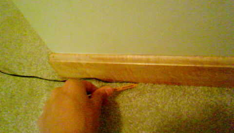 para realmente poner en el cable, me pareció lo mejor usar un lápiz roto. funcionaba mejor que un destornillador o cualquier otra cosa que he probado. en primer lugar, mantiene el cable en un lado. Luego, que te alejes de la mano que sujeta el cable, empujando el cable con el lápiz. que tenga que pasar un par de veces. y trate de no dañar su casa, esto puede no funcionar.