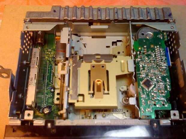 Mi radio tiene 4 cuatro tornillos que sujetan la parte superior. Con la cubierta, usted puede obtener un buen vistazo a la plataforma de transporte de cinta.