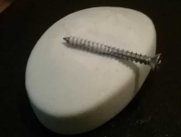 (Aquí está el truco de un viejo carpintero para roscar un tornillo largo cuerpo entero en madera: poner un poco de jabón en las roscas del principio raspando una barra usada de jabón. Se puede enroscar a mano y después de un tiempo el jabón se seque y darle un buen asimiento)