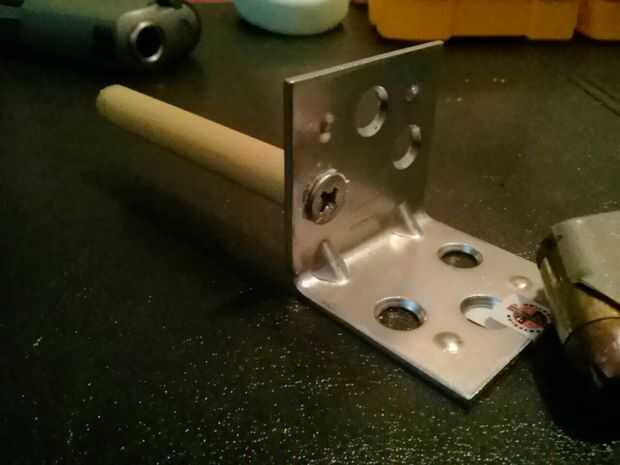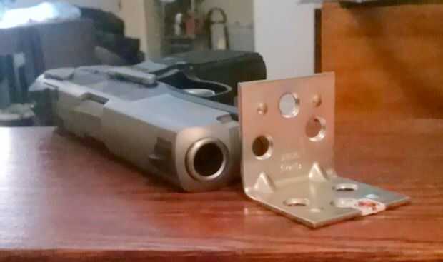 Comprar al tipo de ángulo que tiene tres agujeros para que pueda elegir la separación de la varilla de madera basada en el grueso de la pistola. (Esto no es demasiado crítico como la varilla no enlazar el cañón cuando el arma está acostado, que desea entrar y salida del cañón más plana posible).