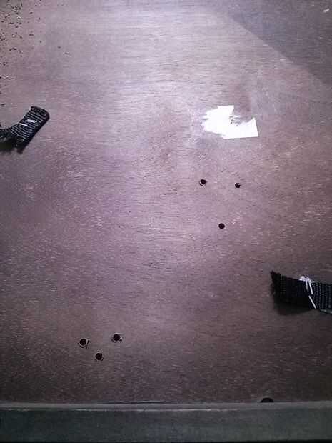 Ahora que la guía de taladro esté en su lugar perforar tu donde ha marcado en la guía. ¡ No taladre más allá de la parada (o guía de la cinta) a menos que coloque poco valor en tu bienestar personal!
