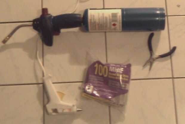 Para las herramientas, usted necesita una antorcha (más obras, mejor la antorcha), un par de alicates y un 4 a un lado archivo cuadrado, una pistola de pegamento y pegamento caliente.